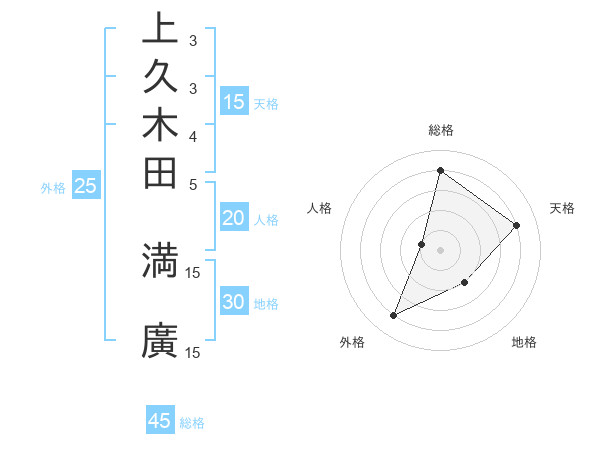 上久木田 満廣さんを姓名の画数から五運を鑑定