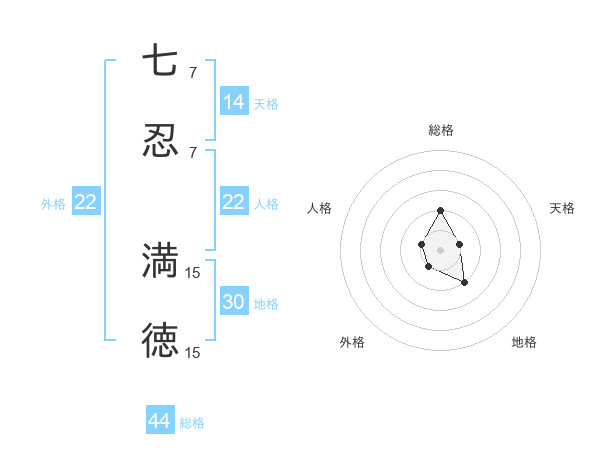 七忍 満徳さんの総格は44画の2点!