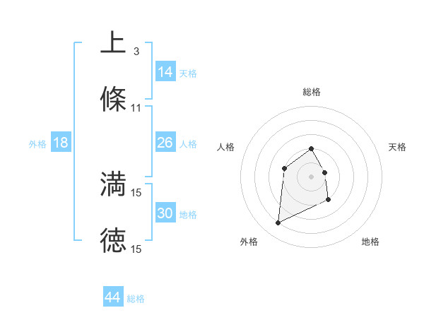 上條 満徳さんの総格は44画の2点!