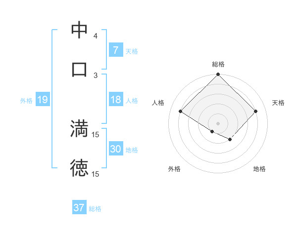 中口 満徳さんの総格は37画の5点!