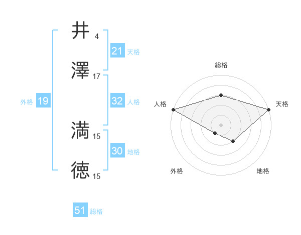 井澤 満徳さんの総格は51画の3点!