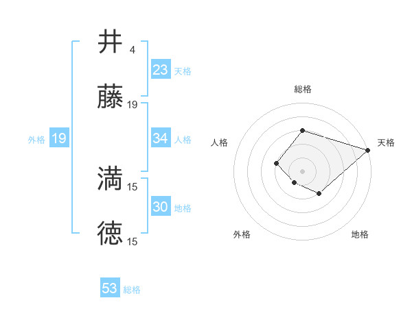 井藤 満徳さんを姓名の画数から五運を鑑定