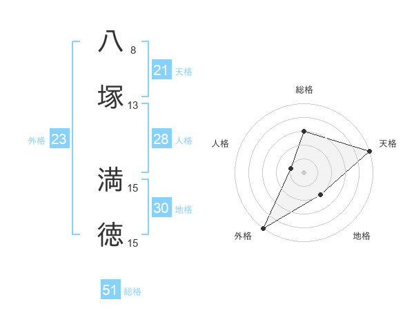 八塚 満徳さんの総格は51画の3点!