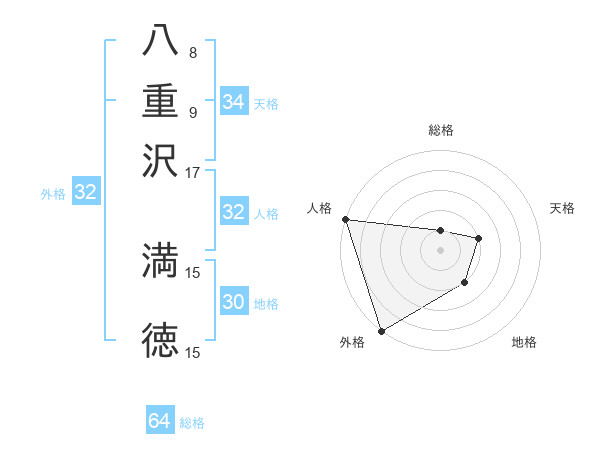 八重沢 満徳さんの総格は64画の1点!