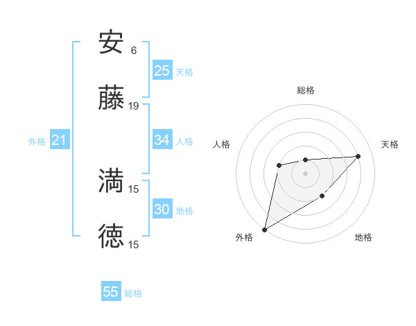安藤 満徳さんの総格は55画の1点!