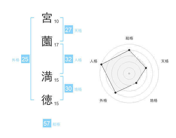 宮薗 満徳さんの総格は57画の4点!