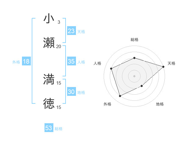 小瀬 満徳さんの総格は53画の3点!