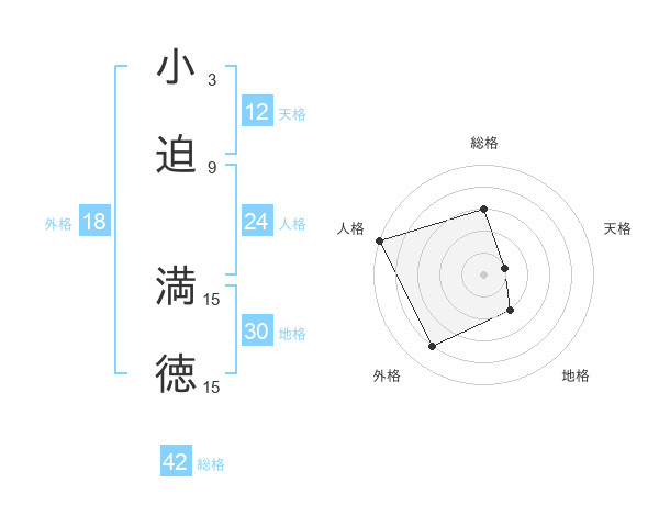 小迫 満徳さんを姓名の画数から五運を鑑定