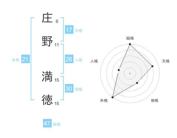 庄野 満徳さんの総格は47画の5点!