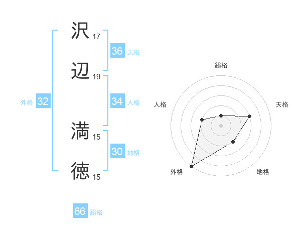 沢辺 満徳さんの総格は66画の1点!