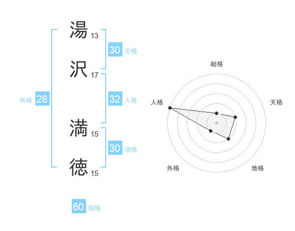 湯沢 満徳さんを姓名の画数から五運を鑑定