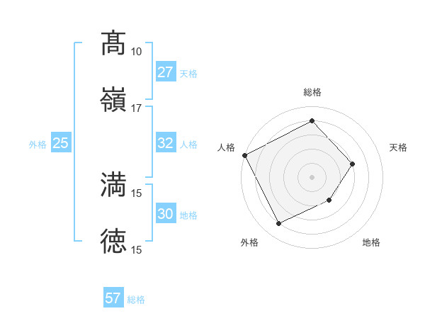 髙嶺 満徳さんの総格は57画の4点!