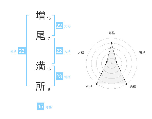 増尾 満所さんの総格は45画の4点