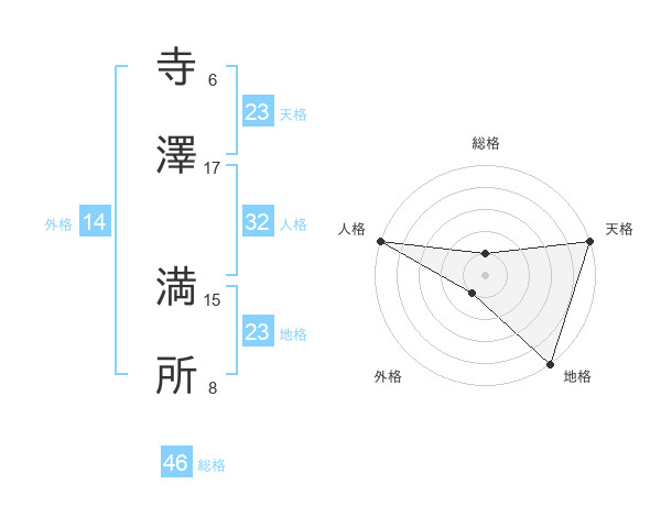 寺澤 満所さんの地格は23画の5点