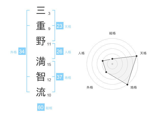 三重野 満智流さんを姓名の画数から五運を鑑定