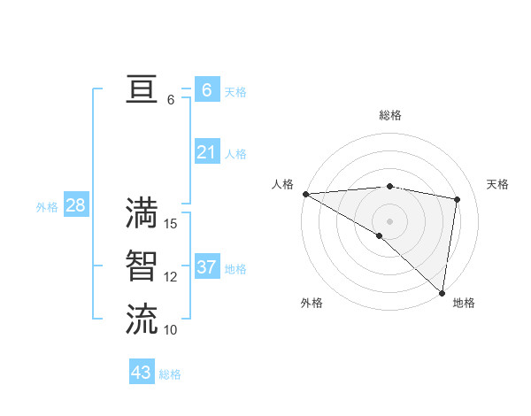亘 満智流さんの地格は37画の5点!