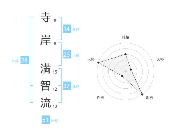 寺岸 満智流さんの総格は51画の3点!