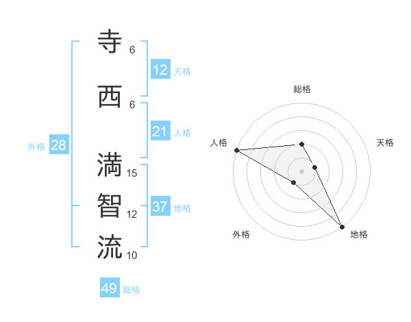 寺西 満智流さんを姓名の画数から五運を鑑定
