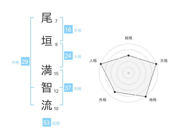 尾垣 満智流さんの総格は53画の3点!