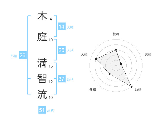 木庭 満智流さんを姓名の画数から五運を鑑定