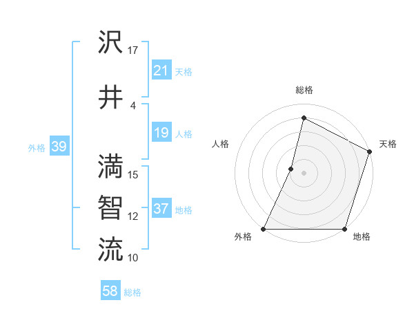 沢井 満智流さんを姓名の画数から五運を鑑定