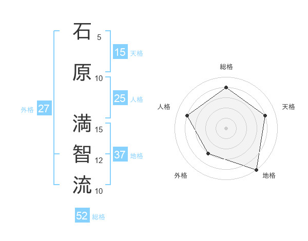 石原 満智流さんの総格は52画の4点!
