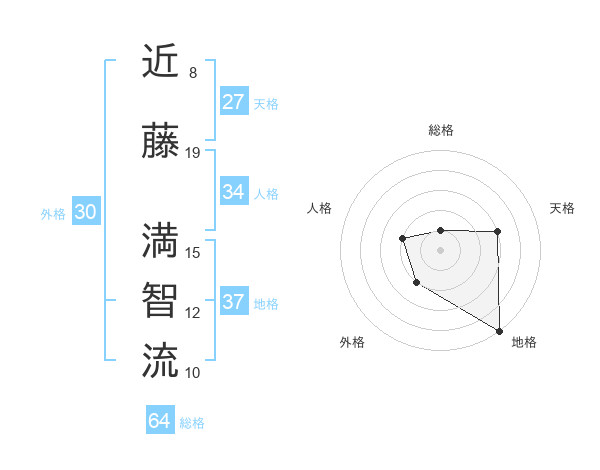近藤 満智流さんの地格は37画の5点