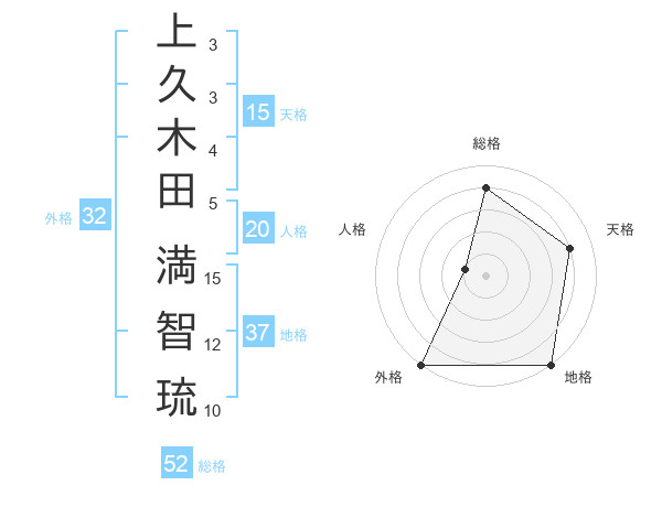 上久木田 満智琉さんを姓名の画数から五運を鑑定