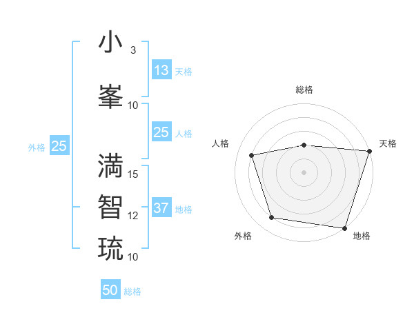 小峯 満智琉さんの天格は13画の5点!
