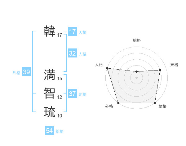 韓 満智琉さんを姓名の画数から五運を鑑定