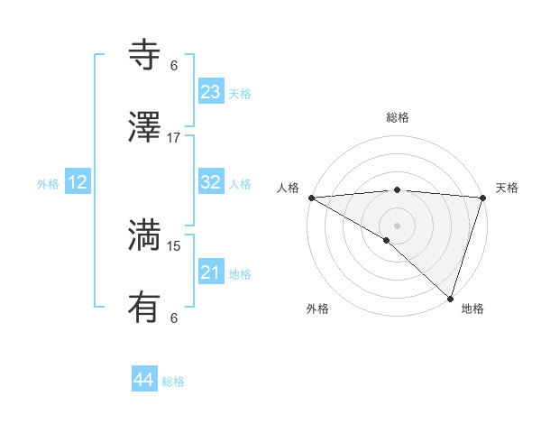 寺澤 満有さんの総格は44画の2点!