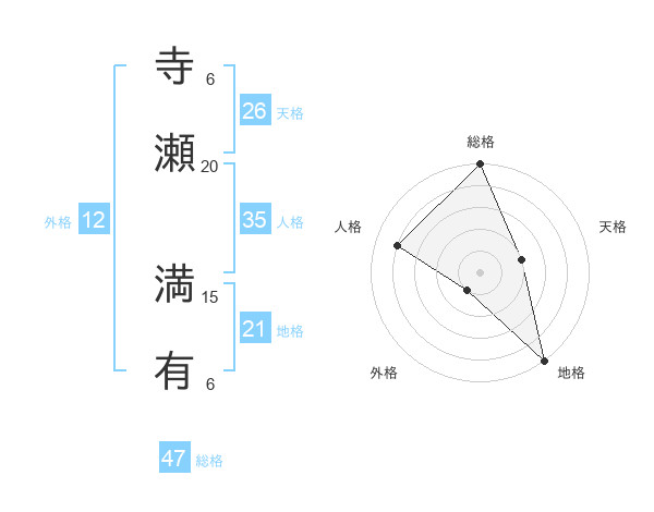 寺瀬 満有さんを姓名の画数から五運を鑑定