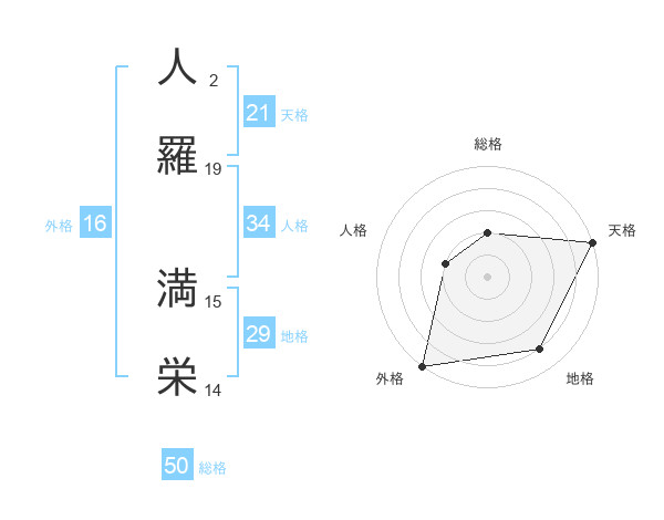 人羅 満栄さんの総格は50画の2点!