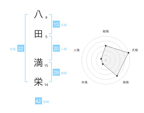 八田 満栄さんの天格は13画の5点!