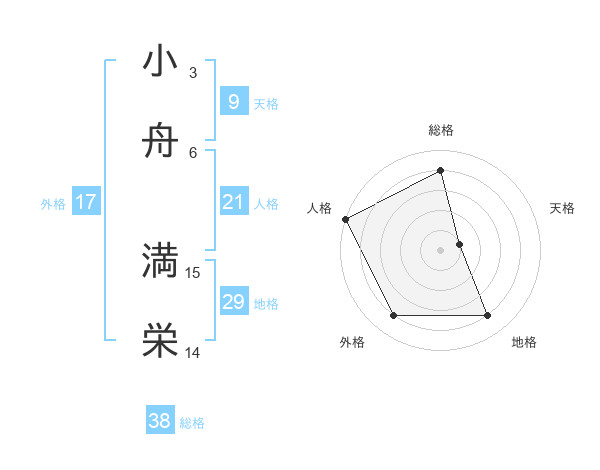 小舟 満栄さんを姓名の画数から五運を鑑定
