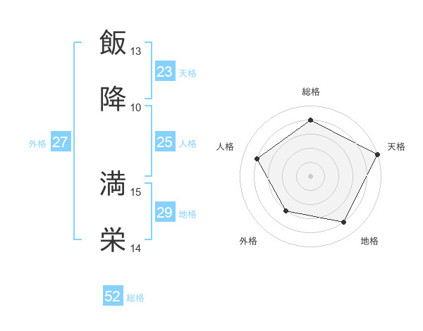 飯降 満栄さんの総格は52画の4点!