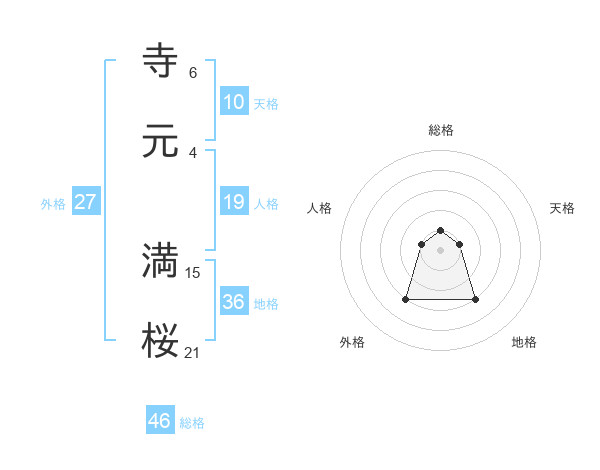 寺元 満桜さんを姓名の画数から五運を鑑定