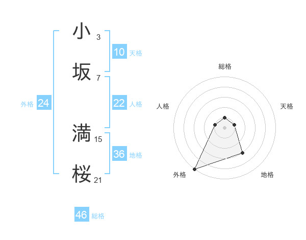 小坂 満桜さんを姓名の画数から五運を鑑定