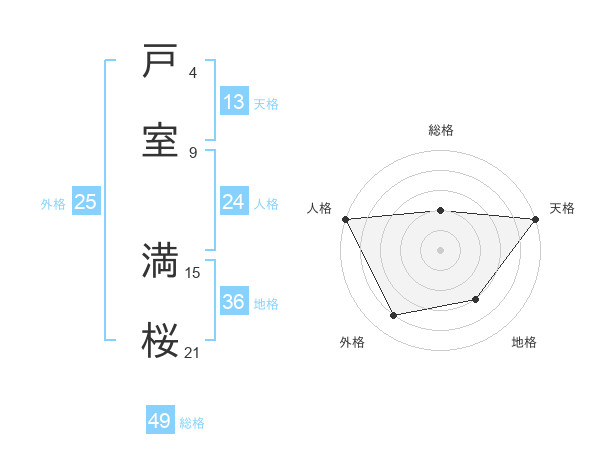 戸室 満桜さんの総格は49画の2点!
