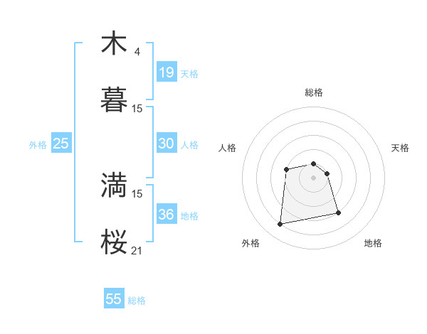 木暮 満桜さんの総格は55画の1点!