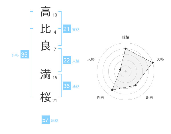 高比良 満桜さんを姓名の画数から五運を鑑定