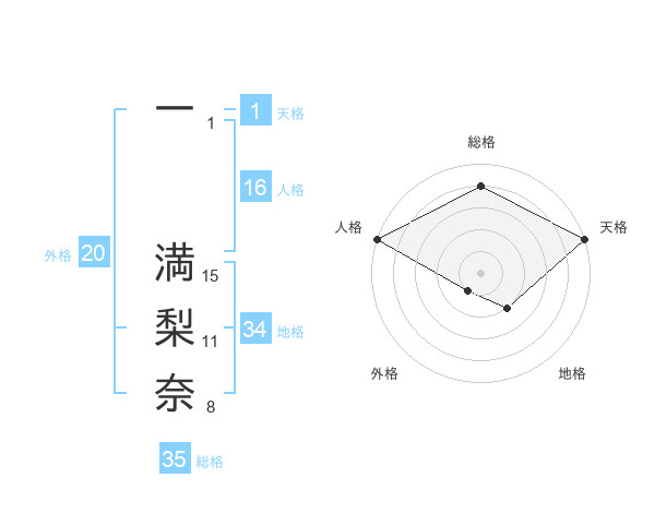 一 満梨奈さんの外格は20画の1点!