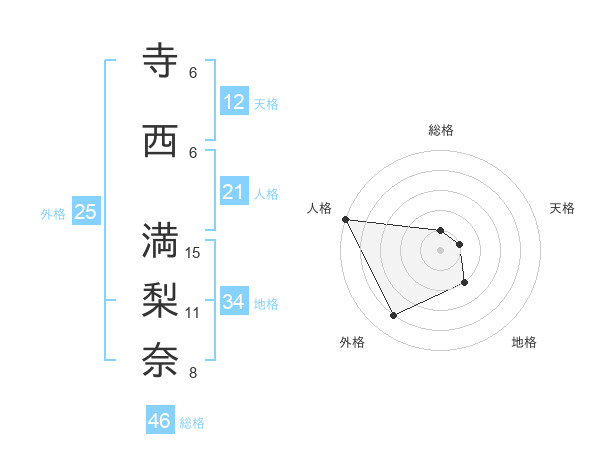 寺西 満梨奈さんの天格は12画の1点!