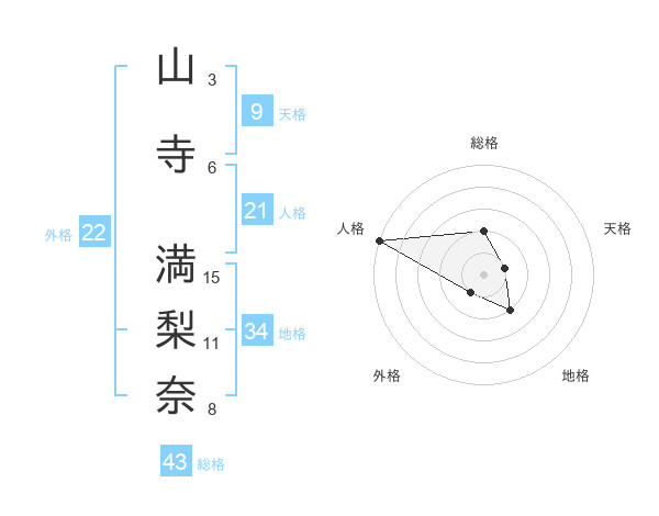 山寺 満梨奈さんの総格は43画の2点!