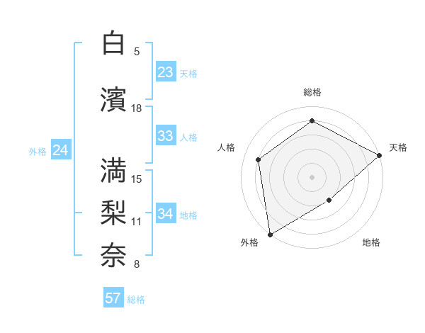 白濱 満梨奈さんの天格は23画の5点!