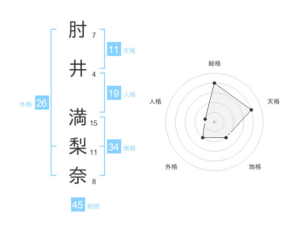 肘井 満梨奈さんの総格は45画の4点!