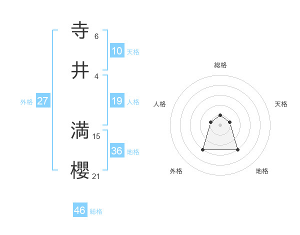 寺井 満櫻さんの総格は46画の1点!