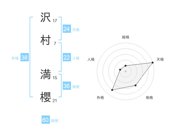 沢村 満櫻さんの天格は24画の5点!