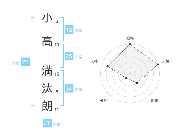 小高 満汰朗さんの総格は47画の5点!