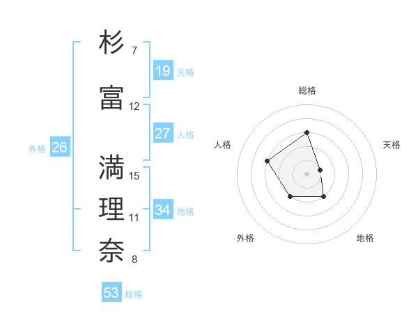 杉富 満理奈さんの総格は53画の3点!